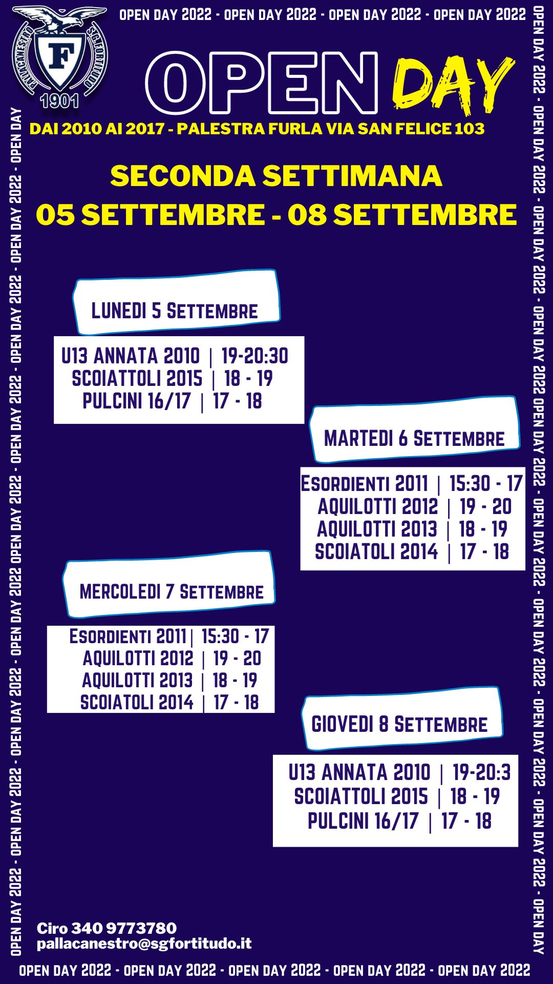 A partire dal 29 Agosto, si spalancano le porte della casa madre Palestra Furla, dove i nati nel 2010 e 2017 potranno venire a conoscere la grande famiglia della Sg Fortitudo.